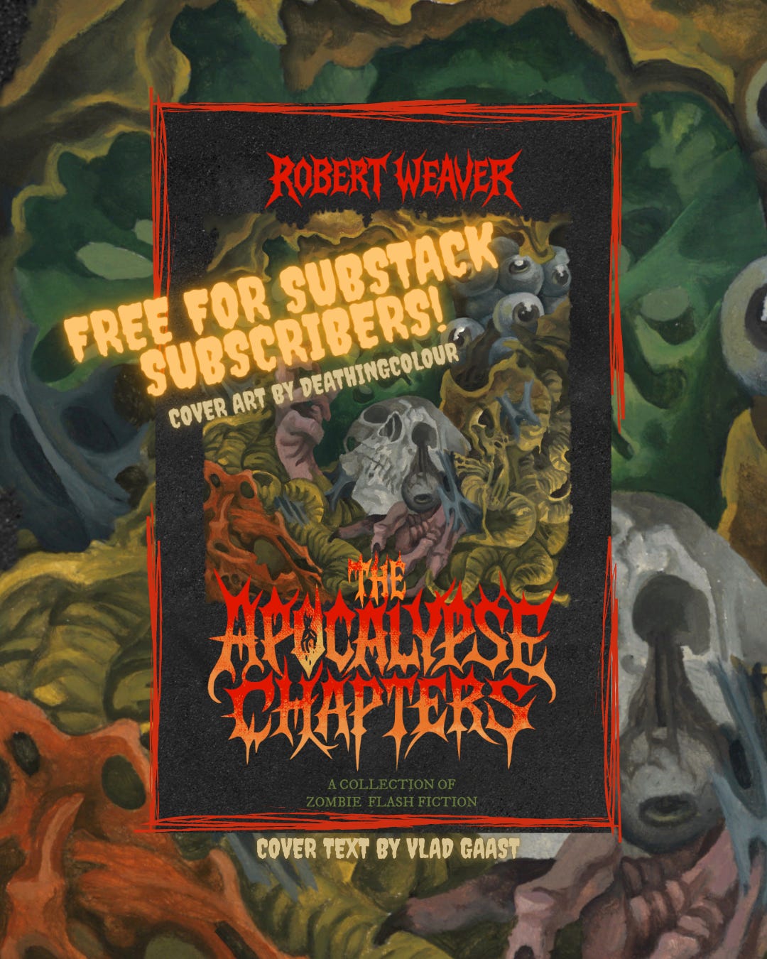 I dislike having to be my own vendor. The only real thing I can offer in these ‘newsletters’ are promos, recommendations, and, when I can, free e-books - and this newsletter has one! The Apocalypse Chapters is free for Substack subscribers - scroll down for the link.